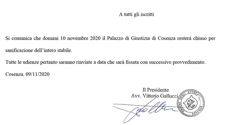 Comunicazioni Uffici Giudiziari In primo piano News A tutti gli iscritti chiusura Tribunale 10 novembre 2020 9 novembre 2020 Ale@2017 1797 Views Allegato