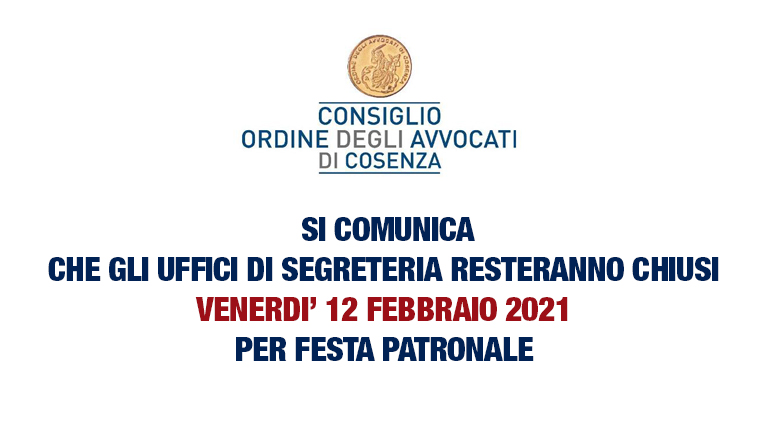 In primo piano News Comunicazione CHIUSURA UFFICI DI SEGRETERIA 12 FEBBRAIO 2021 9 febbraio 20219 febbraio 2021 Ale@2017 574 Views