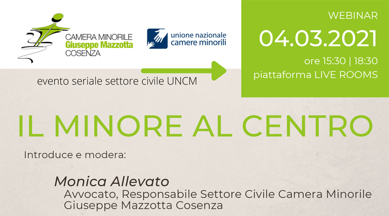 Convegni e Congressi In primo piano Evento Camera Minorile 4 marzo 2021 25 febbraio 2021 Ale@2017 1024 Views Allegato La partecipazione al Convegno dà diritto a n. 3 crediti formativi in materie ordinarie – Diritto Minorile –