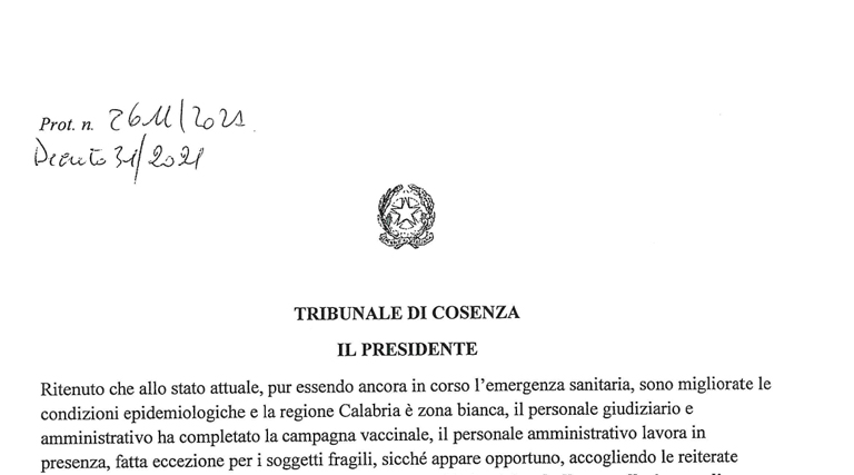 Comunicazioni Uffici Giudiziari In primo piano News Tribunale di Cosenza – Riapertura Uffici e Cancellerie 1 luglio 2021 Ale@2017 1227 Views Allegato