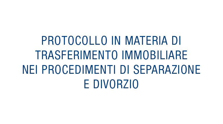 In primo piano Protocollo in materia di trasferimento immobiliare nei procedimenti di separazione e divorzio 19 febbraio 2022 Ale@2017 685 Views Protocollo