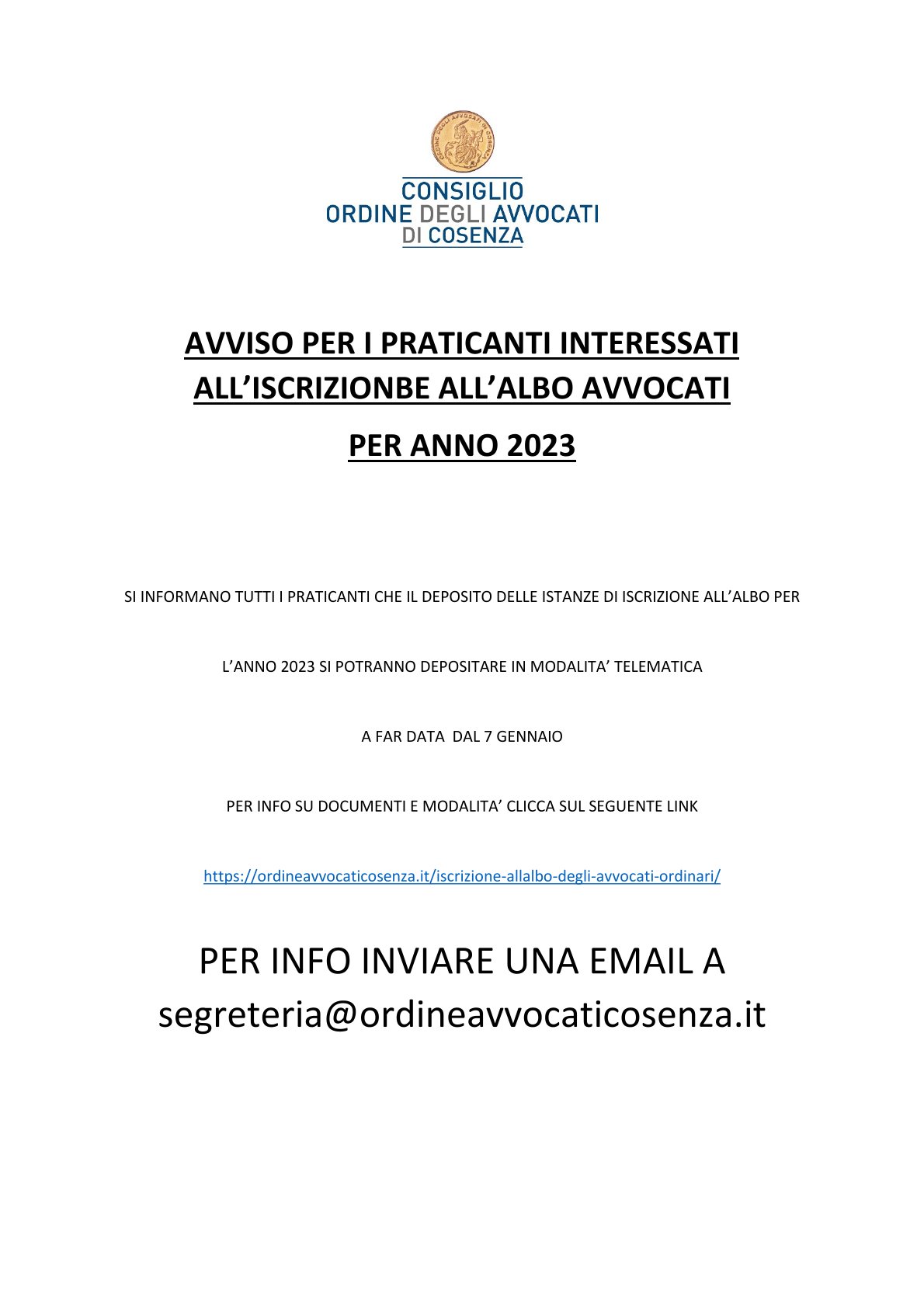 In primo piano News Avviso Praticanti per iscrizione Albo Avvocati 29 dicembre 202230 dicembre 2022 Ale@2017 548 Views