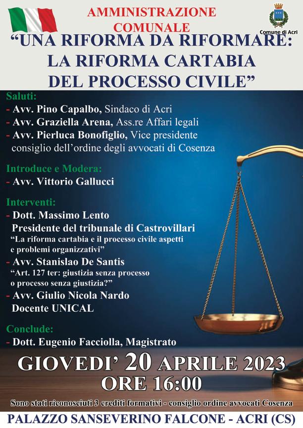 CONVEGNO 20 APRILE 2023 ACRI ORE 16.00