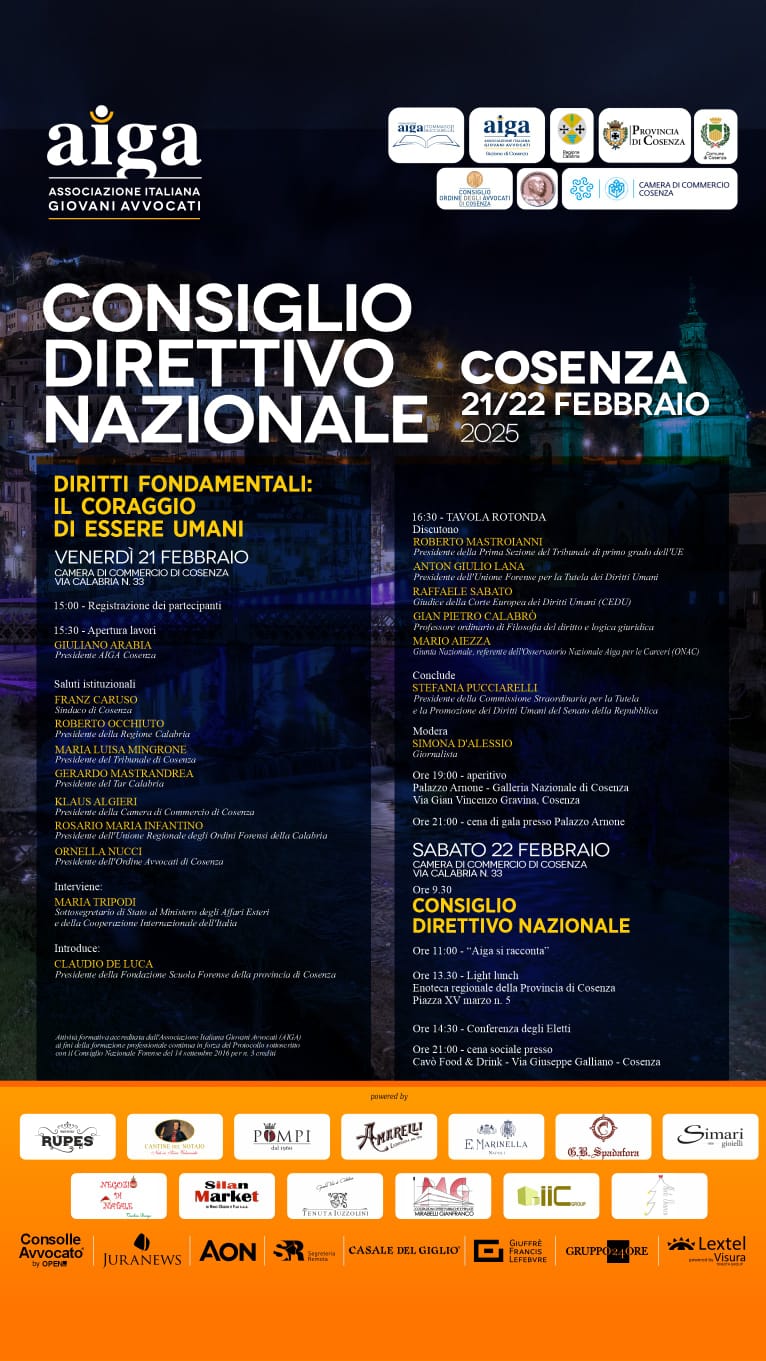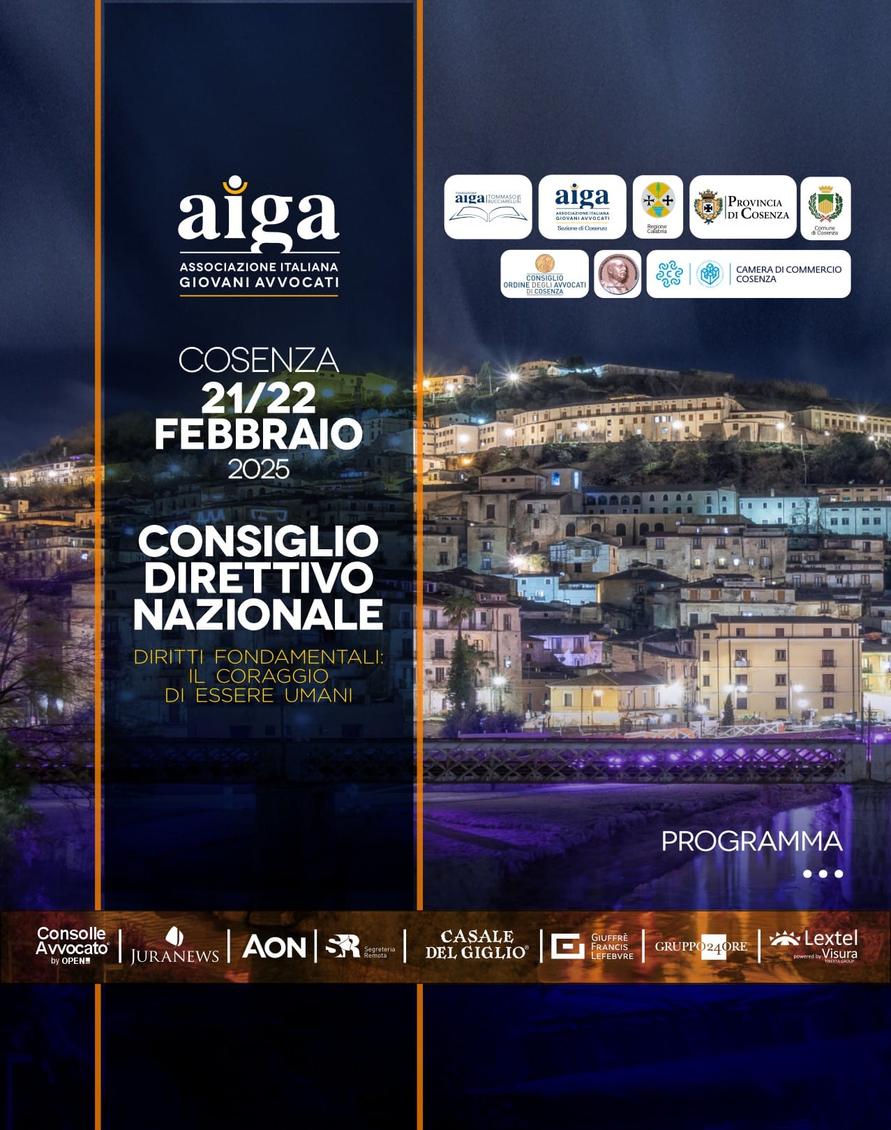 News CONSIGLIO DIRETTIVO NAZIONALE AIGA, COSENZA 21-22 FEBBRAIO 2025 14 febbraio 2025 Ale@2017 407 Views Programma Locandina