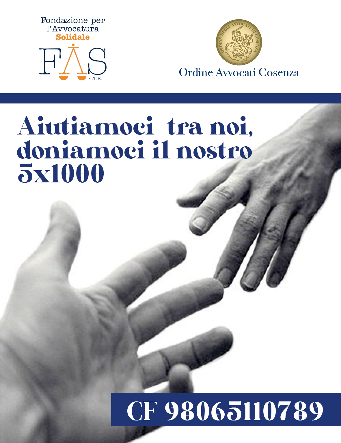 Considerate le finalità della nostra Fondazione, si invitano tutti i Colleghi ad indicare al proprio commercialista il codice fiscale della Fondazione per l’Avvocatura Solidale ETS, al fine della destinazione del 5×1000.