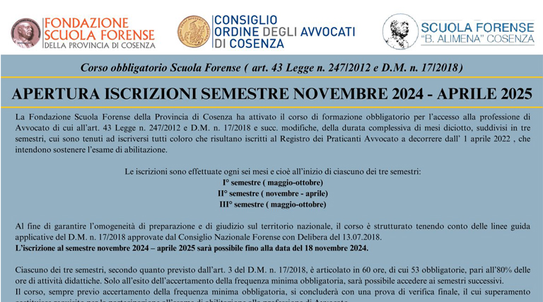 ContinuaIscrizione Scuola Forense Corso obbligatorio ottobre 24 Aprile 25 Locandina